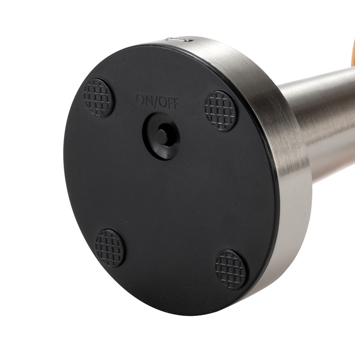Botón táctil de encendido/apagado que regula la intensidad y cambia tres modos de luz (cálida, blanca y blanca cálida).