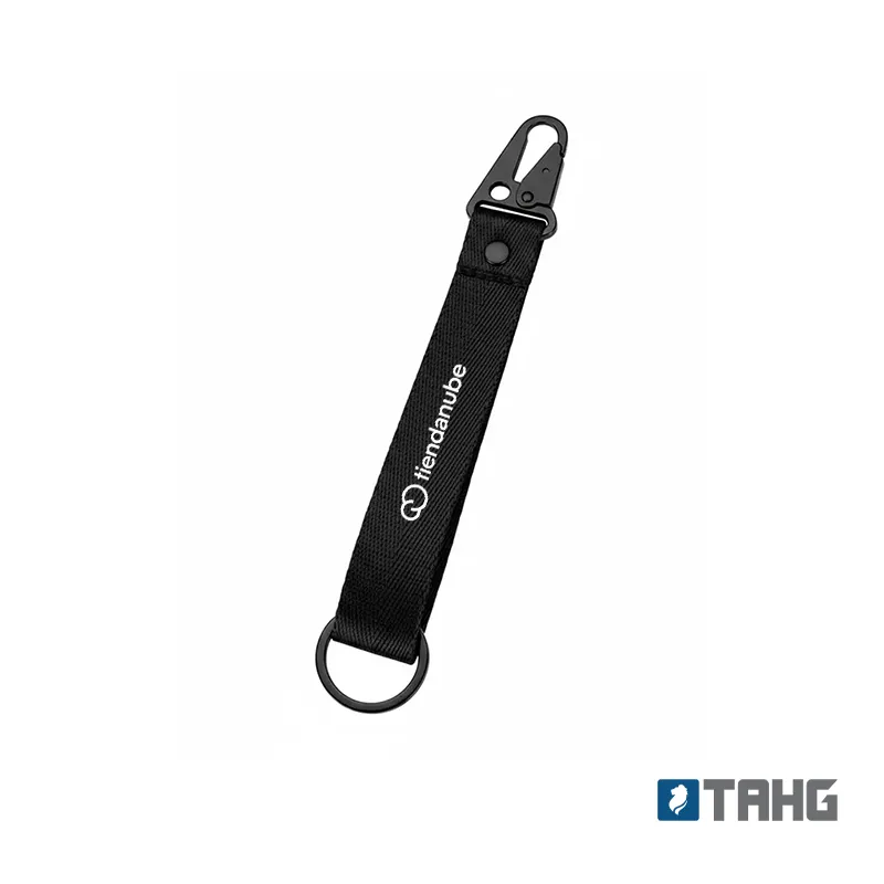 Llavero con cinta de alta resistencia. Diseñado con una estructura de aleación de zinc, cinta de poliéster y anillo de hierro para máxima durabilidad. Cuenta con diseño alargado, ideal para facilitar su sujeción en mochilas, bolsos o llaveros múltiples. Incluye aplicación de un logo.