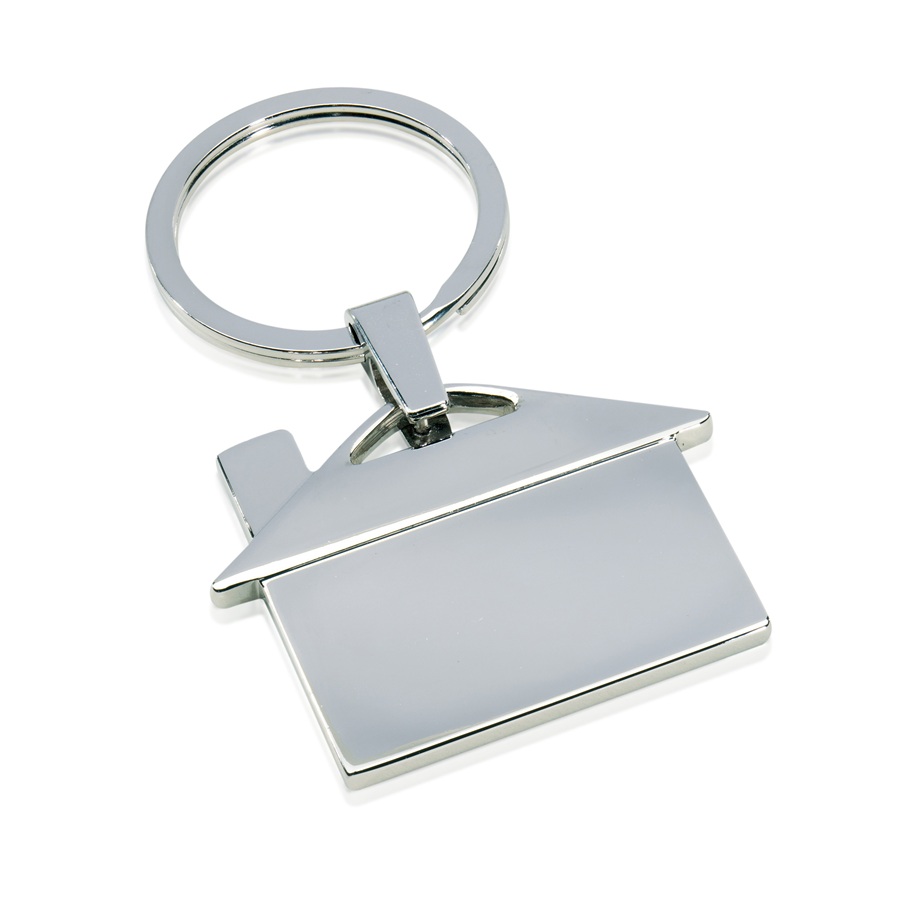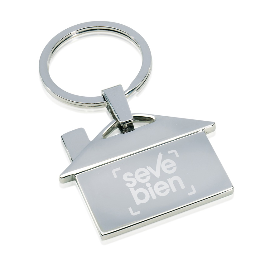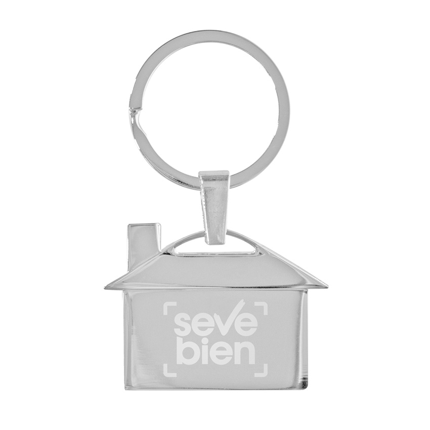 Llavero metálico en forma de casa.  Medidas:3,9 x 3,4 cm. Material: metal. Presentación en caja de regalo. Incluye aplicación de logo.