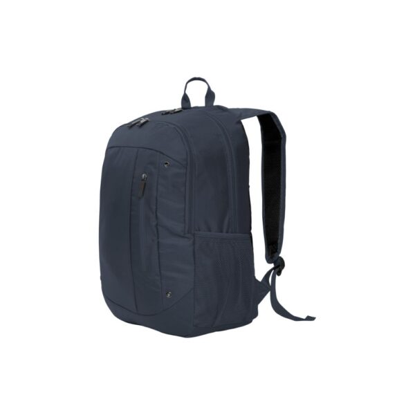 Mochila en tela jacquard poliéster. Medidas: 47 x 32 x 17 cm. Capacidad 25 litros aprox. Posee dos compartimentos el principal con división acolchada porta notebook de hasta 17,3” con bolsillo y el segundo con tres espacios contenedores. Incluye aplicacion de logo.
