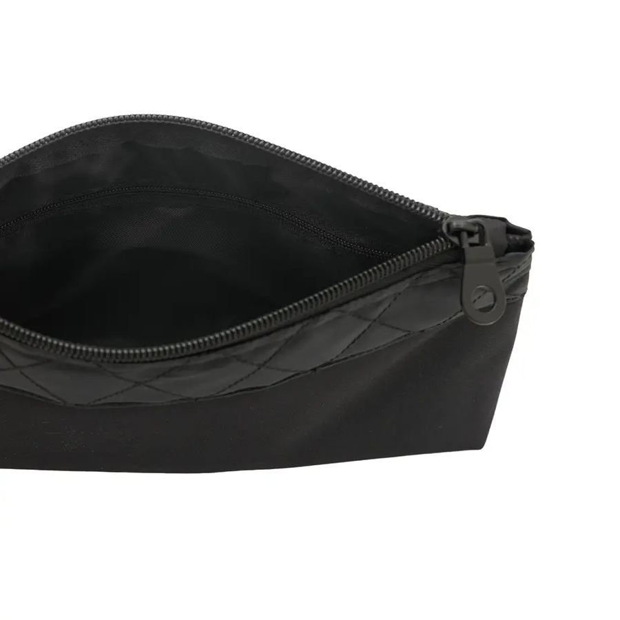 Neceser practico con cierre, confeccionado en microfibra. Incluye costura decorativa en la parte superior. Medidas: 15x5x22cm. Incluye aplicación de un logo.