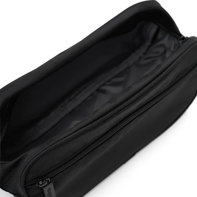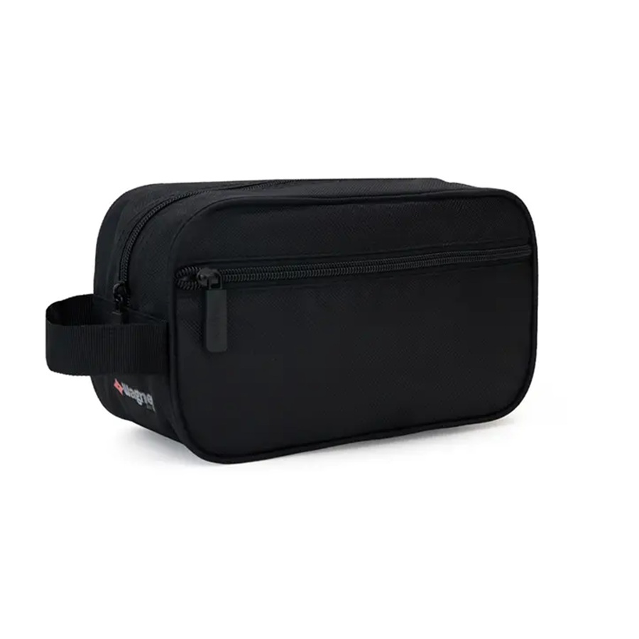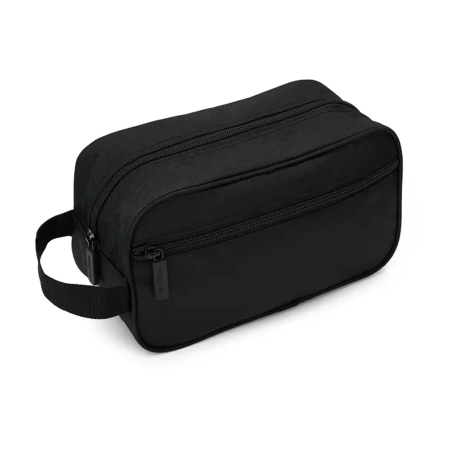 Neceser compacto de viaje fabricado en tela sintética de alta durabilidad.