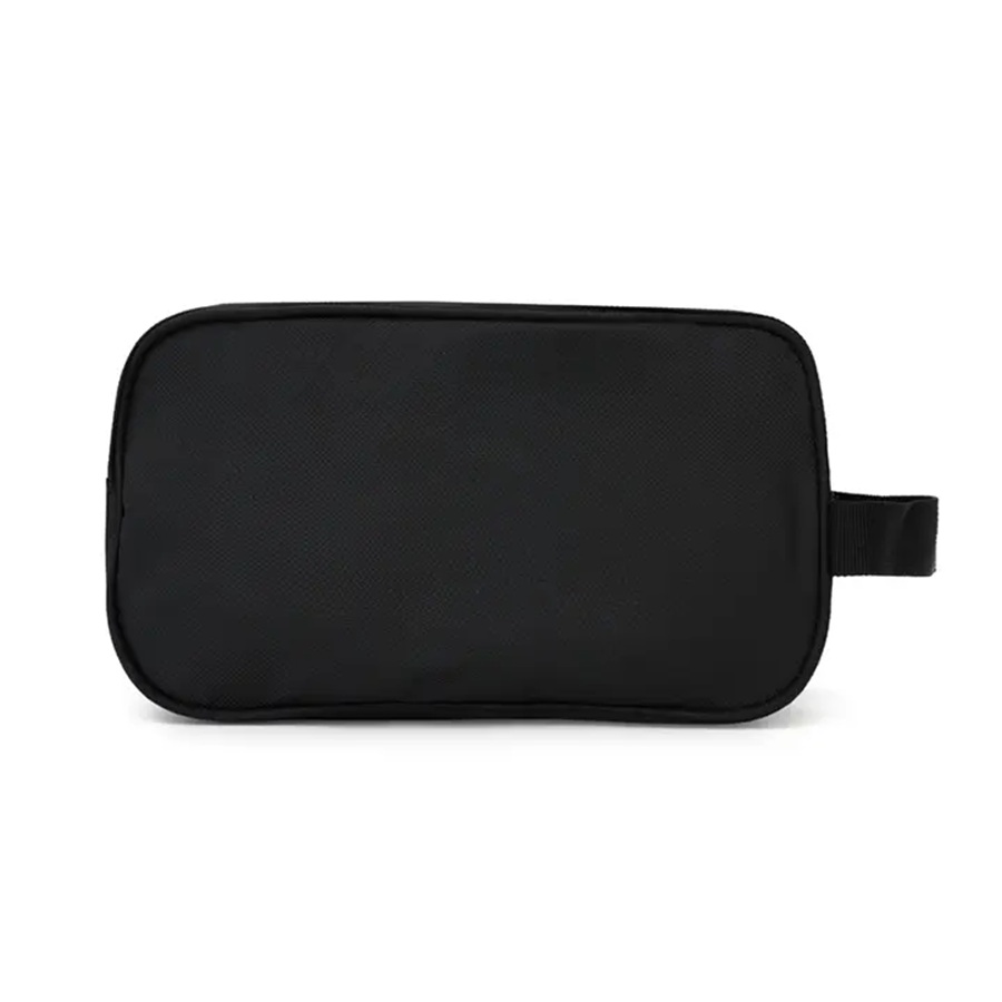 Neceser compacto de viaje fabricado en tela sintética de alta durabilidad. Cuenta con cierre superior, bolsillo frontal con cierre y asa lateral reforzada. Capacidad: 3L. Medidas: 14x11x25cm. Incluye aplicación de un logo.